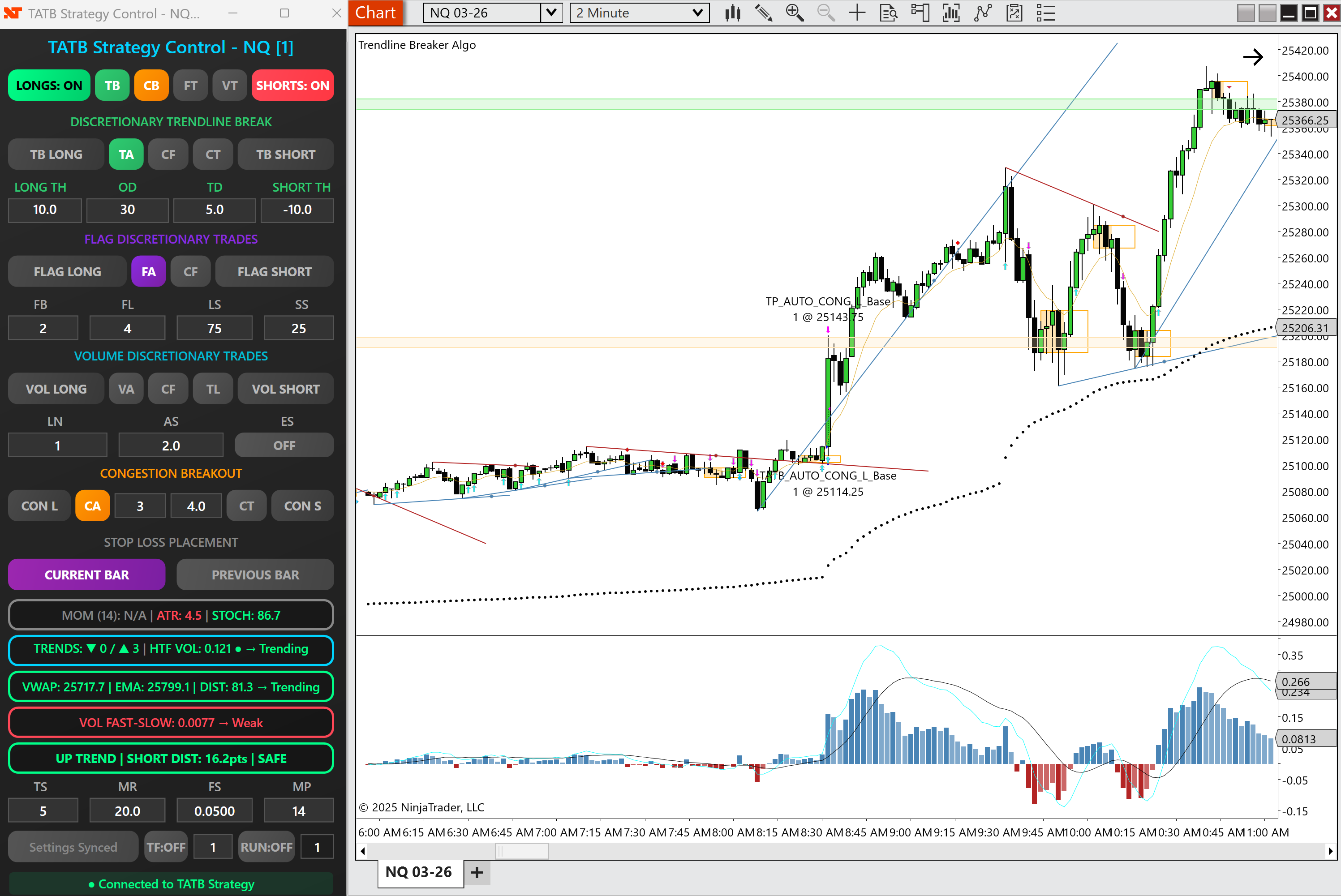 HTF Filter: The system monitors Higher Time Frames (like the 15-minute) to ensure your 2-minute entry isn't fighting a massive institutional trend.