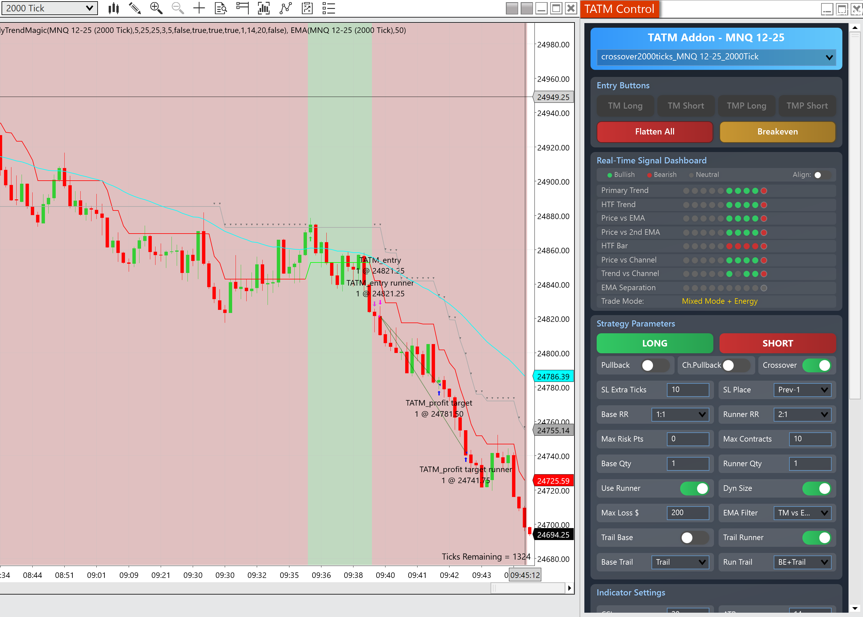 Arm the Next Signal: See a trend forming? Click “ARM TM LONG” and the algo will patiently wait to execute on the next official TrendMagic crossover, ensuring a perfect, rule-based entry.