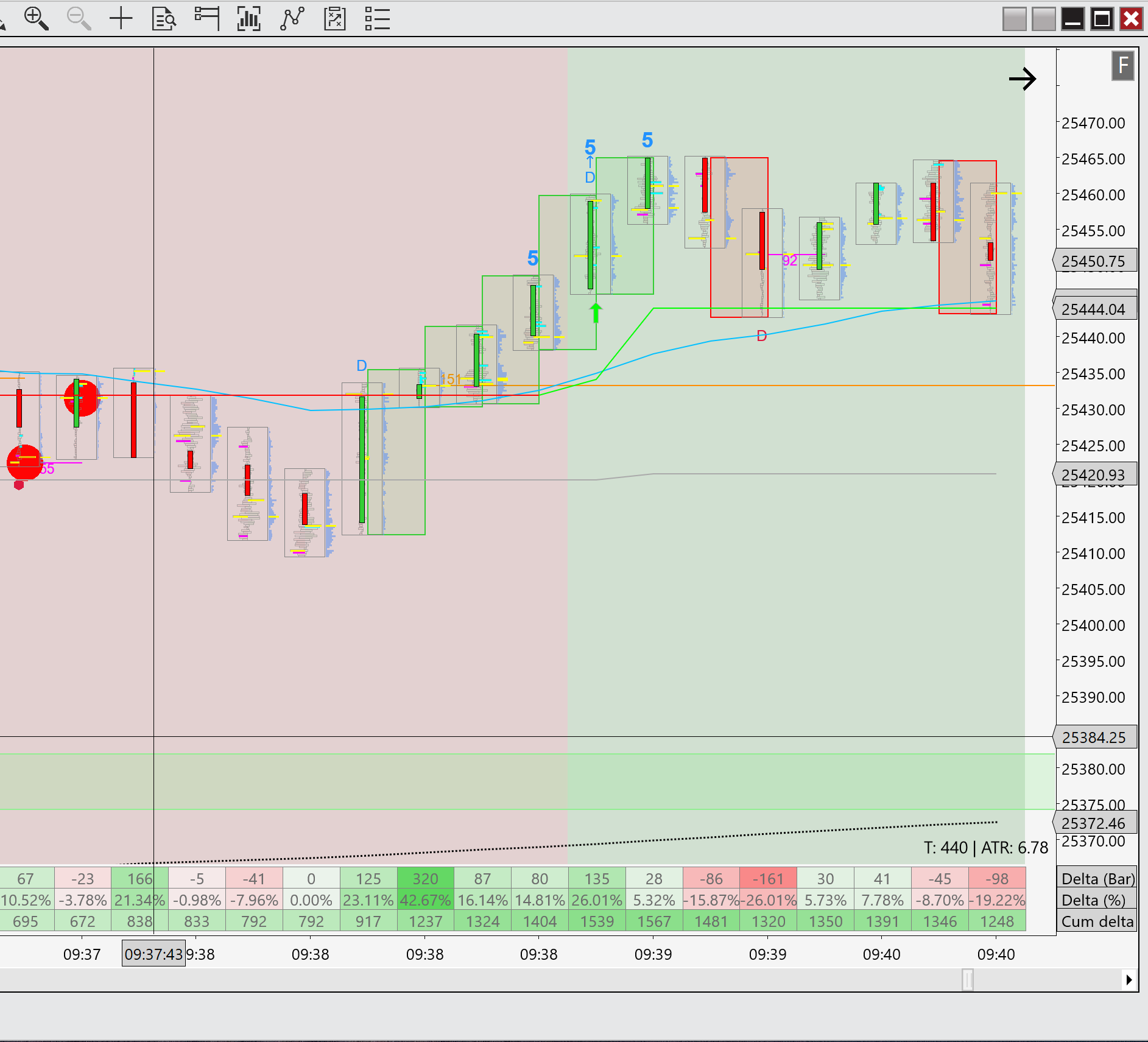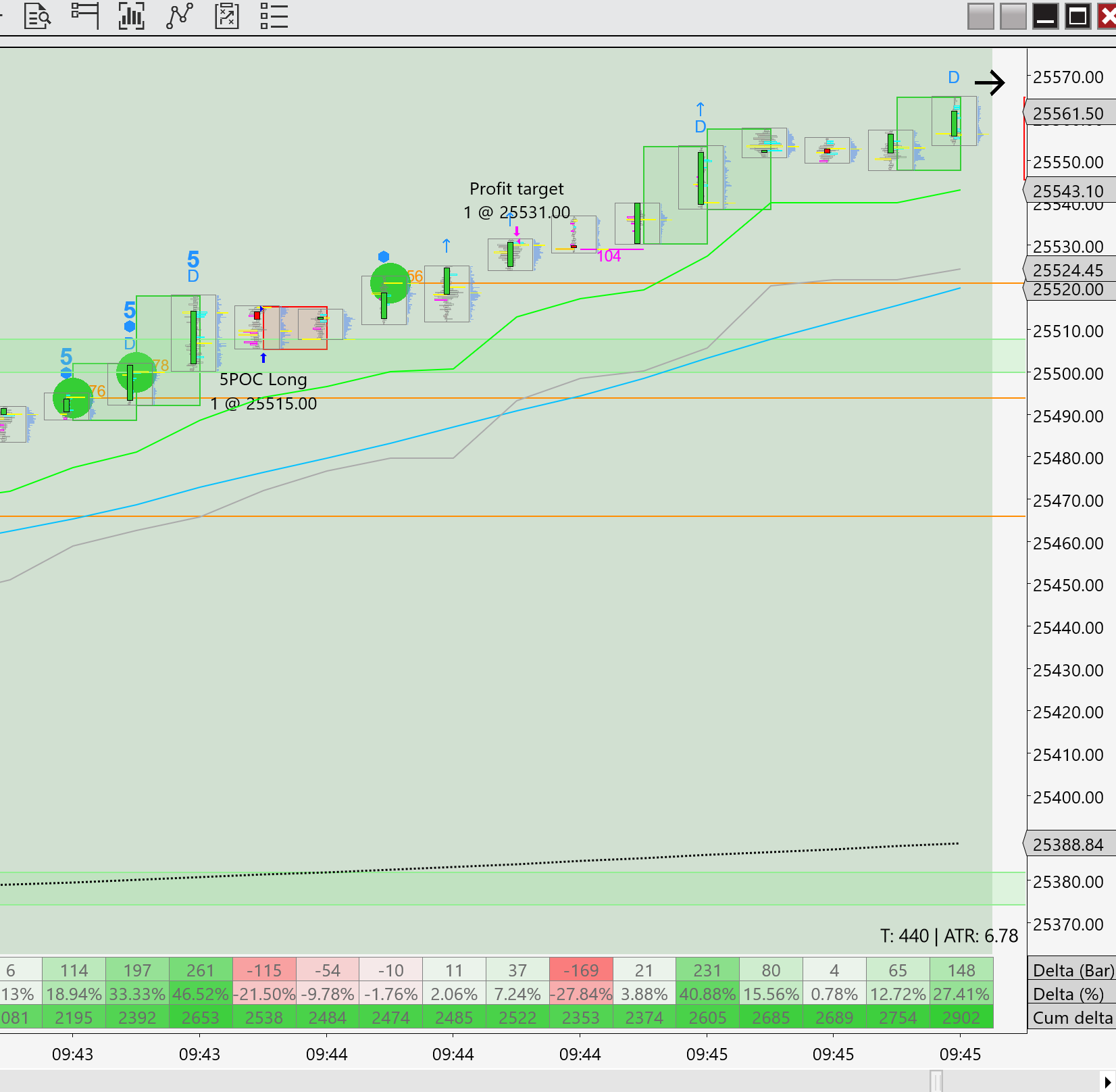 Advanced Patterns: Automatically identifies Stacked Imbalances, Absorption, Delta Flips, and the 5POC (Consistent Point of Control).